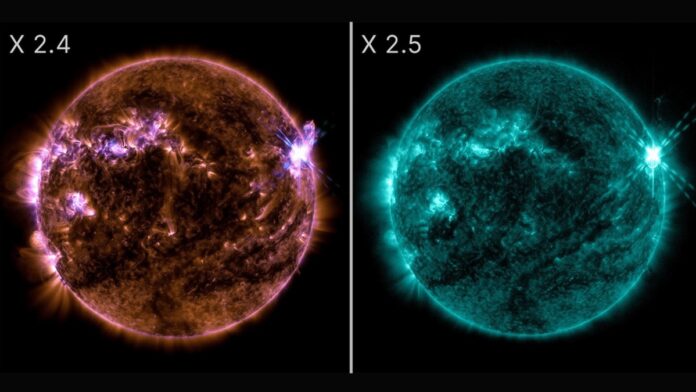 Slunce nedávno prokázalo svou kolosální sílu tím, že během několika hodin odpálilo dvě významné sluneční erupce třídy X. Podle NASA Solar Dynamics Observatory došlo k prvnímu výbuchu X2.4 23. dubna ve 21:07. východní čas (EDT). Jen o několik hodin později, druhý den ráno ve 04:13 EDT, následovala ještě intenzivnější X2,5 vzplanutí třídy.